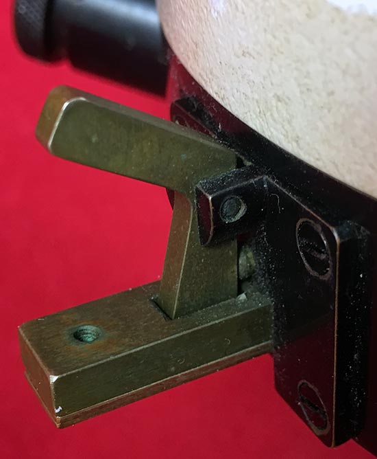 Oben der Auslösehebel der Kreisklemme und unten der Klemmhebel für die Kreisklemme. |