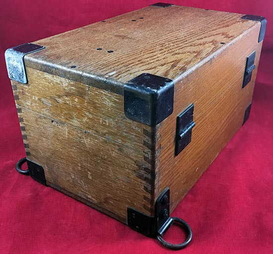 Klebezettel im Boden der Transportkiste, datiert vom Oktober 1933. Das bestätigt das Herstellungsjahr 1934. |
