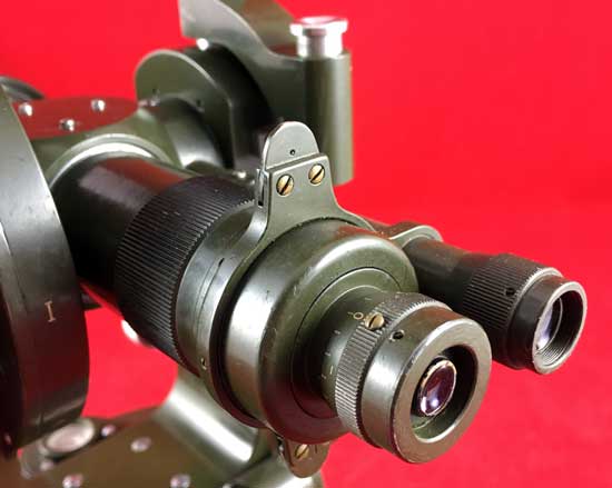 Dieses Instrument ist etwas ganz Besonderes. Es wurde mit der Beleuchtungseinrichtung für die Teilkreise und für die Strichplatte für die NVA (Nationale Volksarmee) der ehemaligen DDR ausgeliefert. Das letzte Mal wurde der Theo im Dezember 1985 justiert bzw. gewartet laut dem grünen Aufkleber am Instrument. Er war höchstwahrscheinlich ein Depot-Instrument. Diese wurden meist nur eingelagert, um im Ernstfall sofort und fehlerfrei einsatzbereit zu sein.