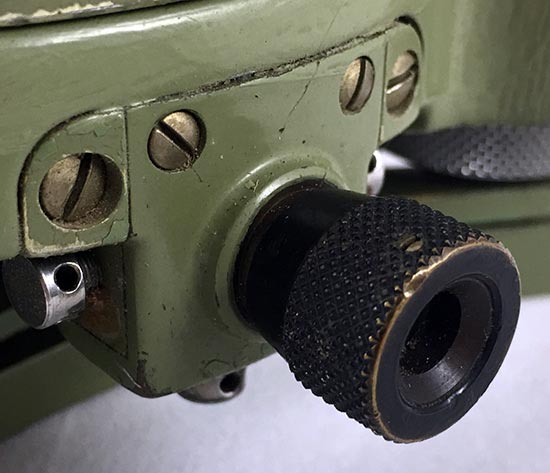 ![]() Objektiv mit Korn, hinten der Regulierknopf mit Zentrierspitze |